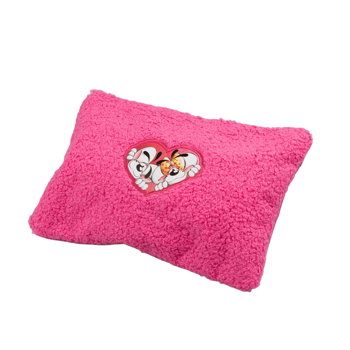 Pochette douce en tissu bouclette rose fuchsia avec cœur Diddl et Diddlina. Idéale pour ranger bijoux, secrets ou petits accessoires.