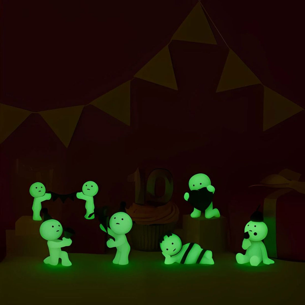 • Série anniversaire des 10 ans Smiski • 1 figurine aléatoire par boîte • 6 modèles + 1 figurine secrète • Plastique phosphorescent (brille dans le noir) • Conçu au Japon • Blind Box : modèle non sélectionnable • Possibilité de recevoir des doublons