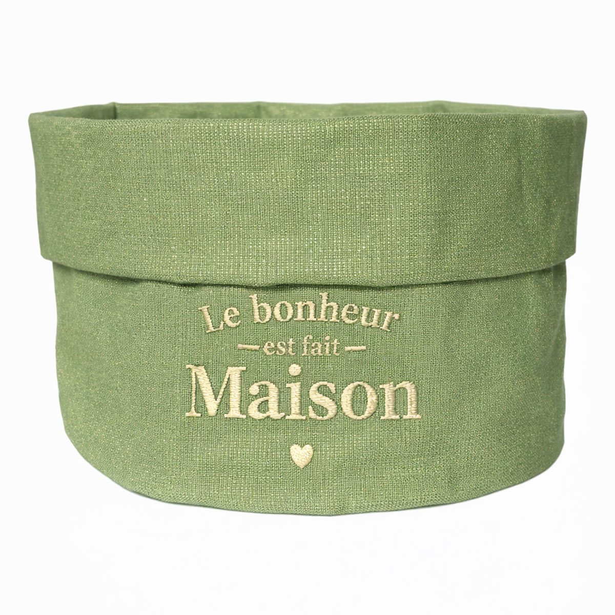 Petite corbeille à pain pailletée brodée Le bonheur est fait maison – Vert – Broderie dorée – STC