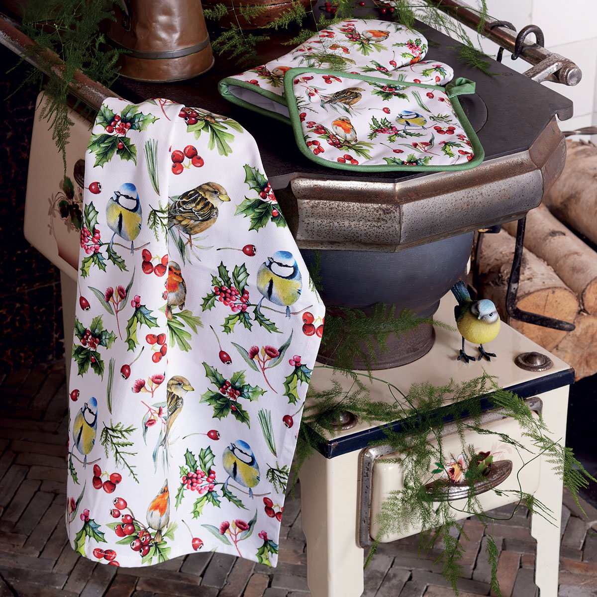 Apportez une note naturelle et festive à votre cuisine avec ce torchon en coton orné de jolis oiseaux et de branches de baies rouges. Pratique et décoratif, il allie charme et fonctionnalité pour vos tâches quotidiennes.