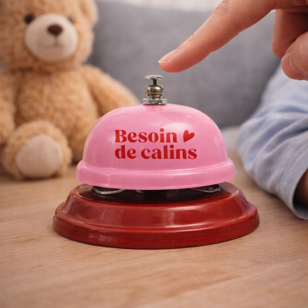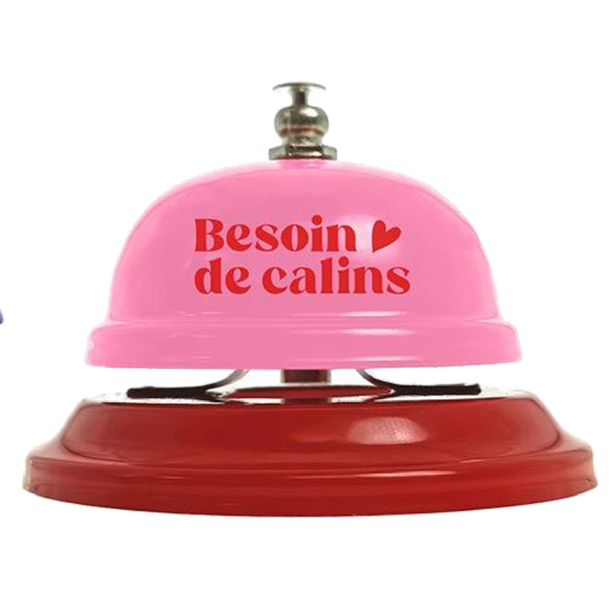 Cloche de table « Besoin de câlins » en métal rose et rouge – sonnette humoristique – Ø 7,5 cm – hauteur 6 cm – STC • Cloche de table humoristique avec message « Besoin de câlins » • Mécanisme à pression : un simple appui déclenche un son clair • Dimensions : hauteur 6 cm – diamètre 7,5 cm • Matière : métal – finition rose et rouge • Idéale pour bureau, maison, cadeau original ou décoration ludique Cette cloche de table « Besoin de câlins » apporte une touche d’humour et de tendresse à votre quotidien. Son message affectueux et son design coloré en font un objet aussi décoratif qu’amusant. Facile à utiliser, elle fonctionne avec un bouton poussoir : une simple pression suffit pour attirer l’attention avec une sonnerie claire. Parfaite pour créer une ambiance conviviale à la maison, au bureau ou lors de moments partagés. Compacte et légère, elle trouve facilement sa place sur une table, un bureau ou une table de chevet. Une idée cadeau originale pour faire sourire et partager un moment de douceur.