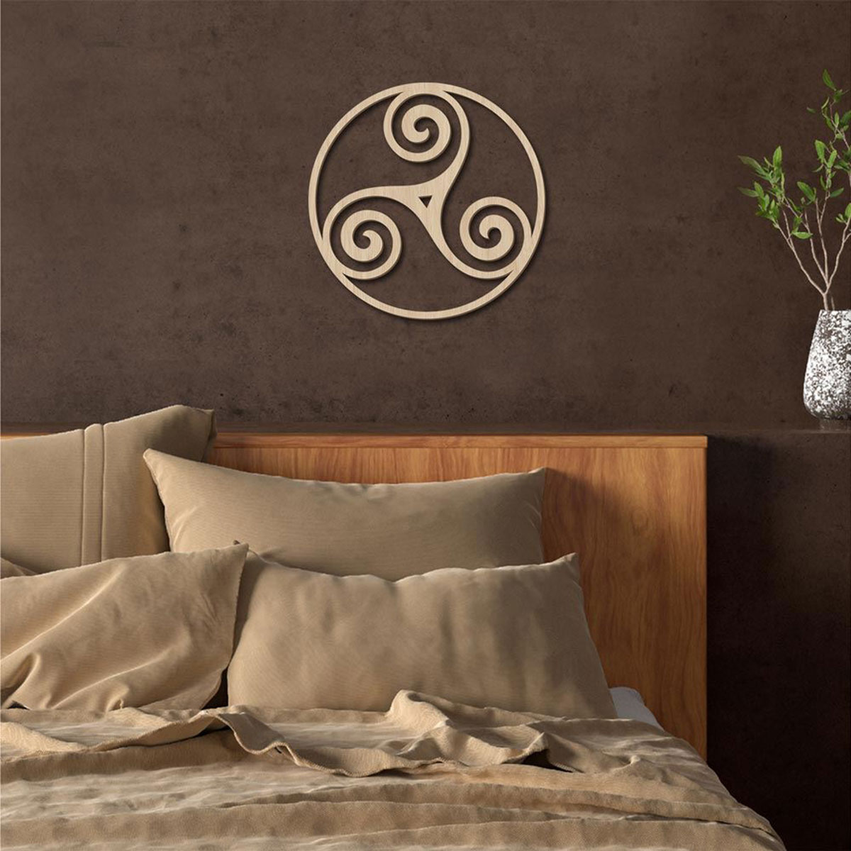 Décoration murale Triskel en bois – 40 cm – Sud Trading Company • Marque : Sud Trading Company • Décoration murale représentant un symbole Triskel celtique • Matière : bois découpé • Couleur : bois naturel clair • Dimensions : largeur 40 cm – hauteur 40 cm – épaisseur 0,4 cm Apportez une touche authentique et symbolique à votre intérieur avec cette décoration murale en bois représentant un Triskel. Symbole emblématique de la culture celtique et bretonne, le Triskel évoque le mouvement, l’équilibre et l’harmonie. Son design circulaire aux trois spirales crée une décoration graphique à la fois élégante et intemporelle. Réalisée en bois naturel clair, cette décoration murale s’intègre facilement dans différents styles d’intérieur : naturel, bohème, contemporain ou inspiré de la Bretagne. Avec son format de 40 cm, elle devient un élément décoratif idéal pour un salon, une chambre ou une entrée.