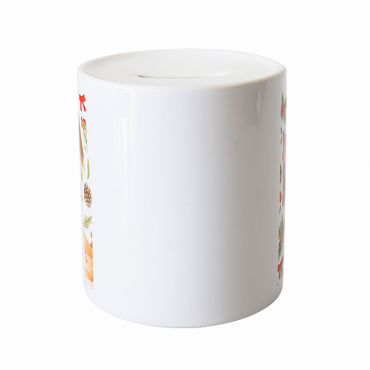 Tirelire Animaux de la Forêt – CBKréation Tirelire en céramique blanche avec décor poétique d’animaux de la forêt, imprimée en France. • Fabricant : CBKréation • Matière : céramique • Dimensions : H 9,5 cm × Ø 8 cm • Ouverture par bouchon sous la tirelire • Impression française par sublimation thermique • Design nature et tendre • Idée cadeau pour enfant ou décoration forestière