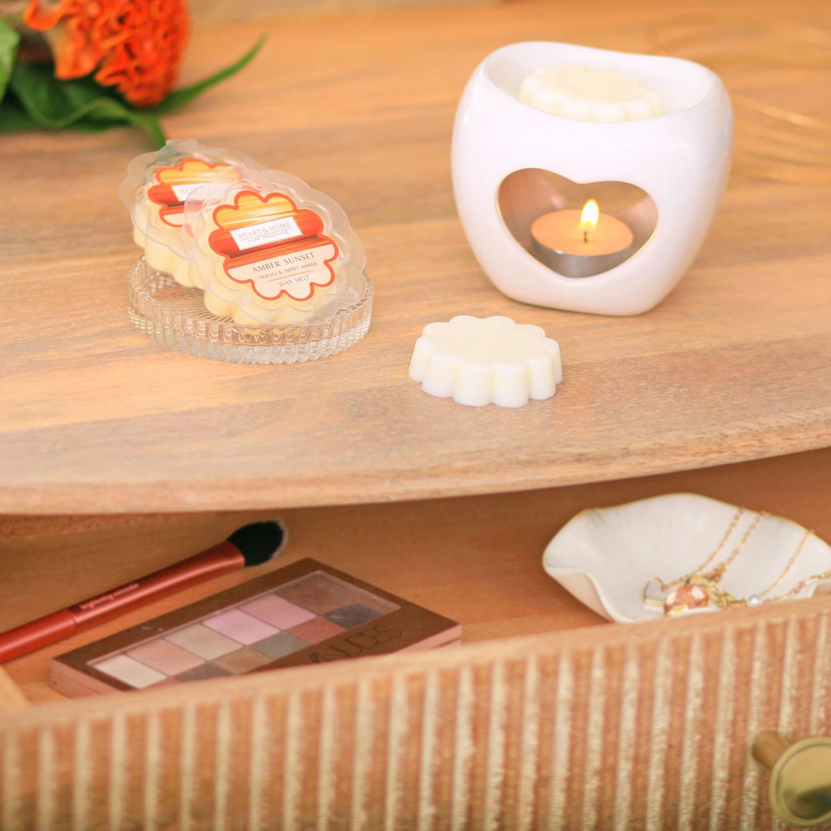 Fondant parfumé Crépuscule ambré 26 g – Néroli, ambre doux & zeste d’orange – Cire de soja – Wax melt – Heart & Home • Marque : Heart & Home • Poids : 26 g • Temps de diffusion : jusqu’à 12 heures • Cire de soja renouvelable, vegan friendly • Compatible avec brûleurs traditionnels et électriques • Parfum : zeste d’orange pétillant, fleur de néroli et ambre doux Le fondant parfumé Crépuscule ambré parfume rapidement votre intérieur grâce à une diffusion intense et immédiate. Il suffit de le déposer dans un brûle-parfum pour profiter d’une ambiance chaleureuse et élégante. Son mélange lumineux d’agrumes, de néroli et d’ambre crée une atmosphère apaisante et raffinée. Son petit format est idéal pour tester différentes senteurs selon vos envies. Contient : Linalool, Linalyl acetate. Peut produire une réaction allergique.