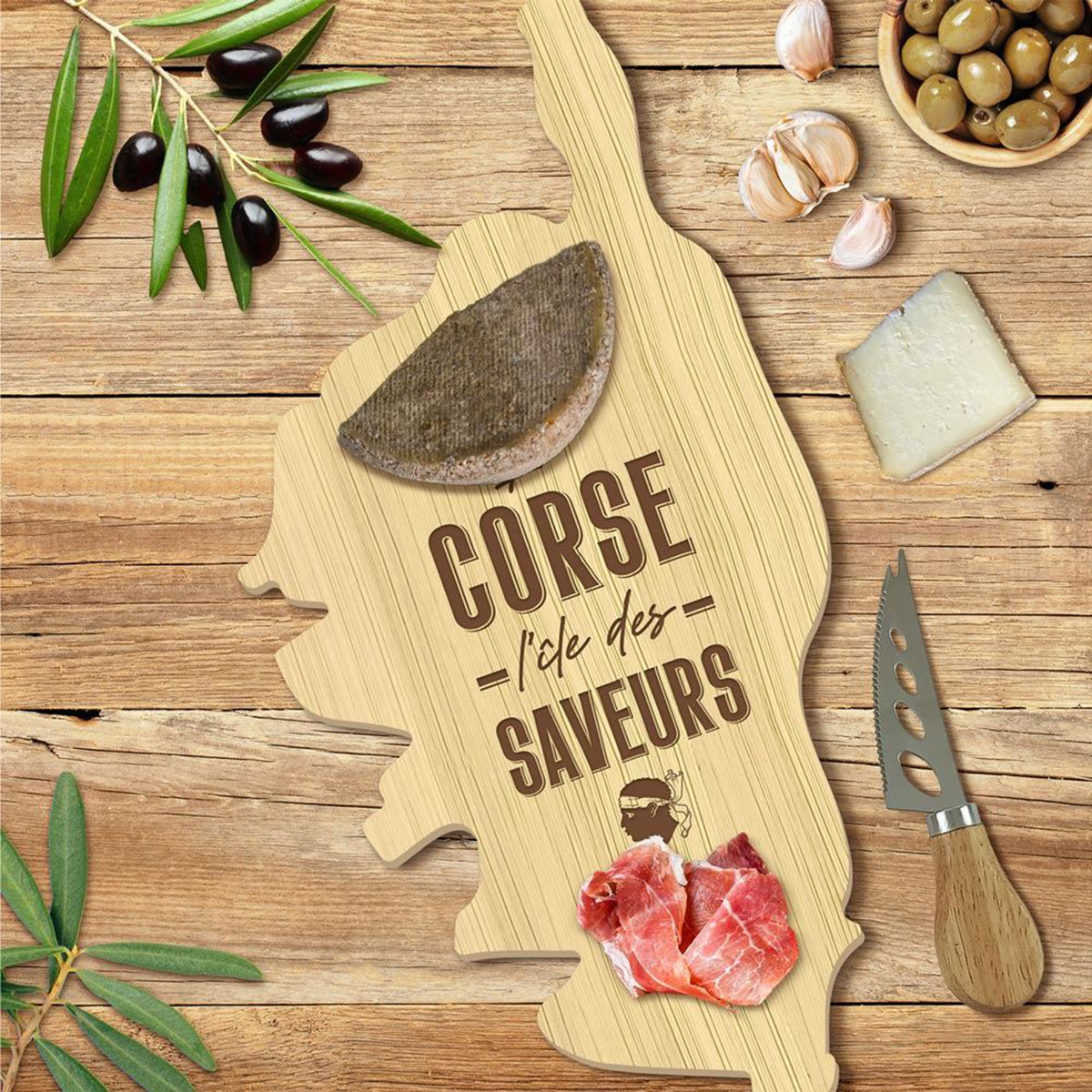 • Coffret comprenant une planche apéritif en forme de Corse et un couteau • Idéal pour la présentation de fromages, charcuteries et apéritifs • Design original avec inscription « La Corse – l’île des saveurs » • Planche en bambou naturel, résistante et durable • Parfait pour un usage quotidien ou comme idée cadeau
