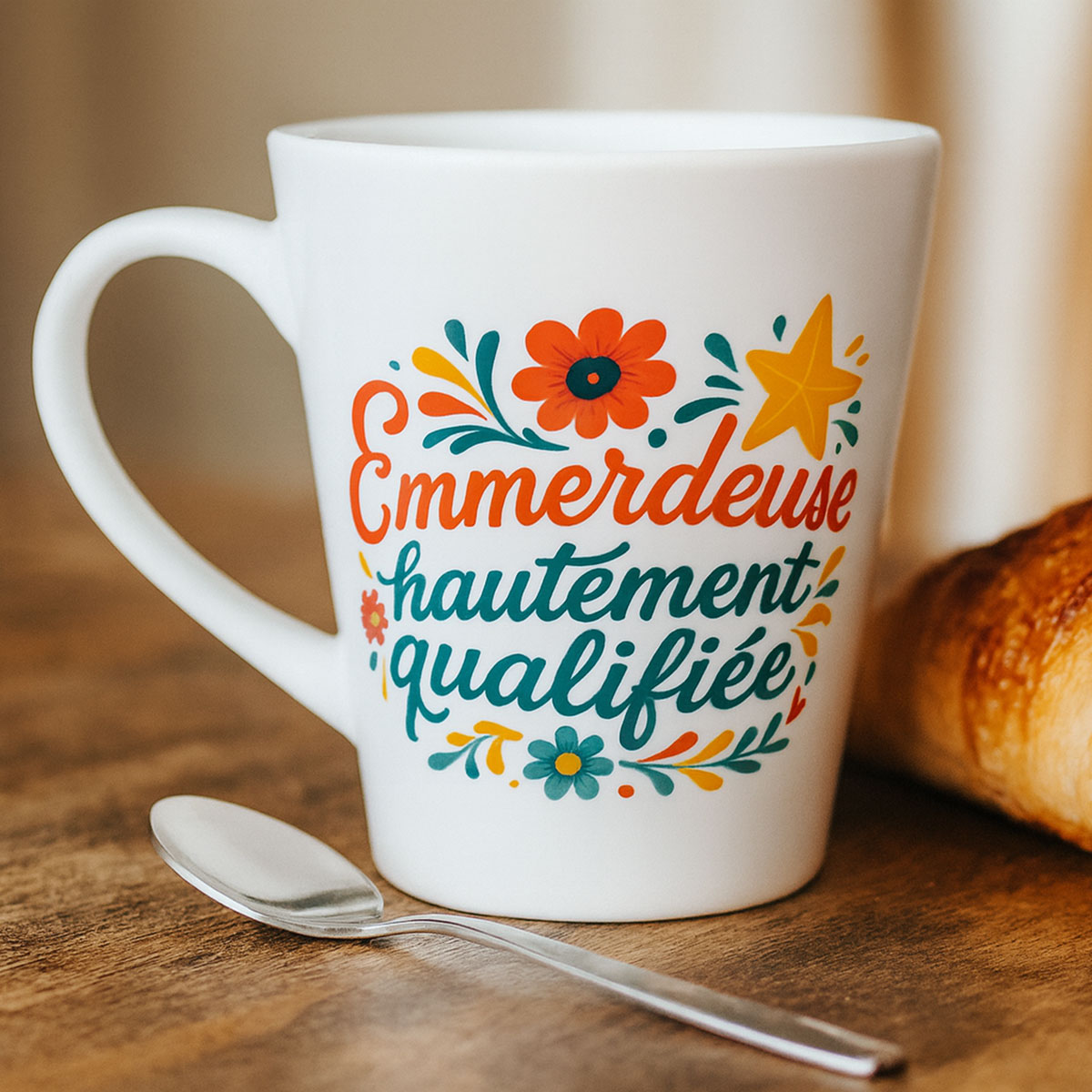 Mug Conique “Emmerdeuse hautement qualifiée” – CBKréation
