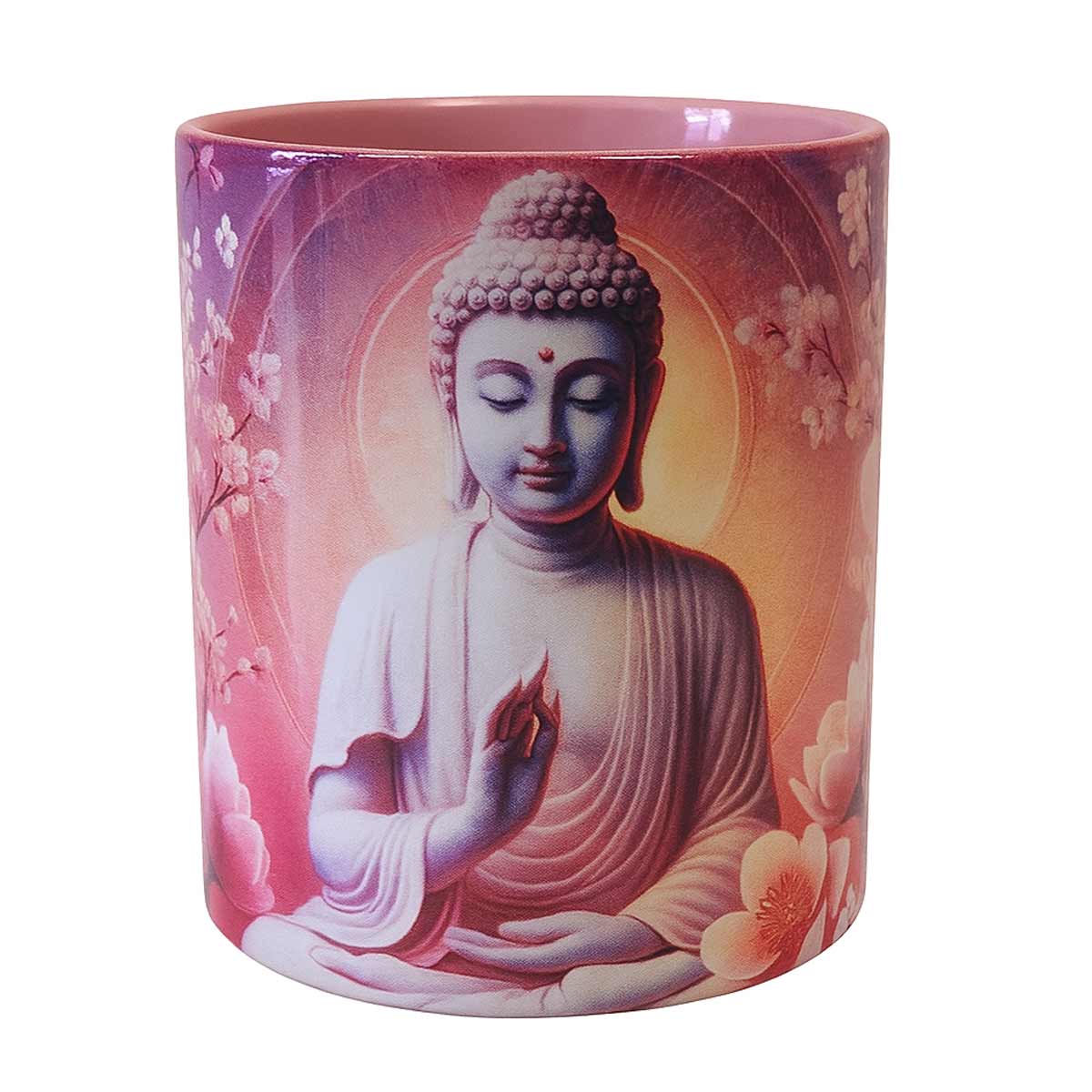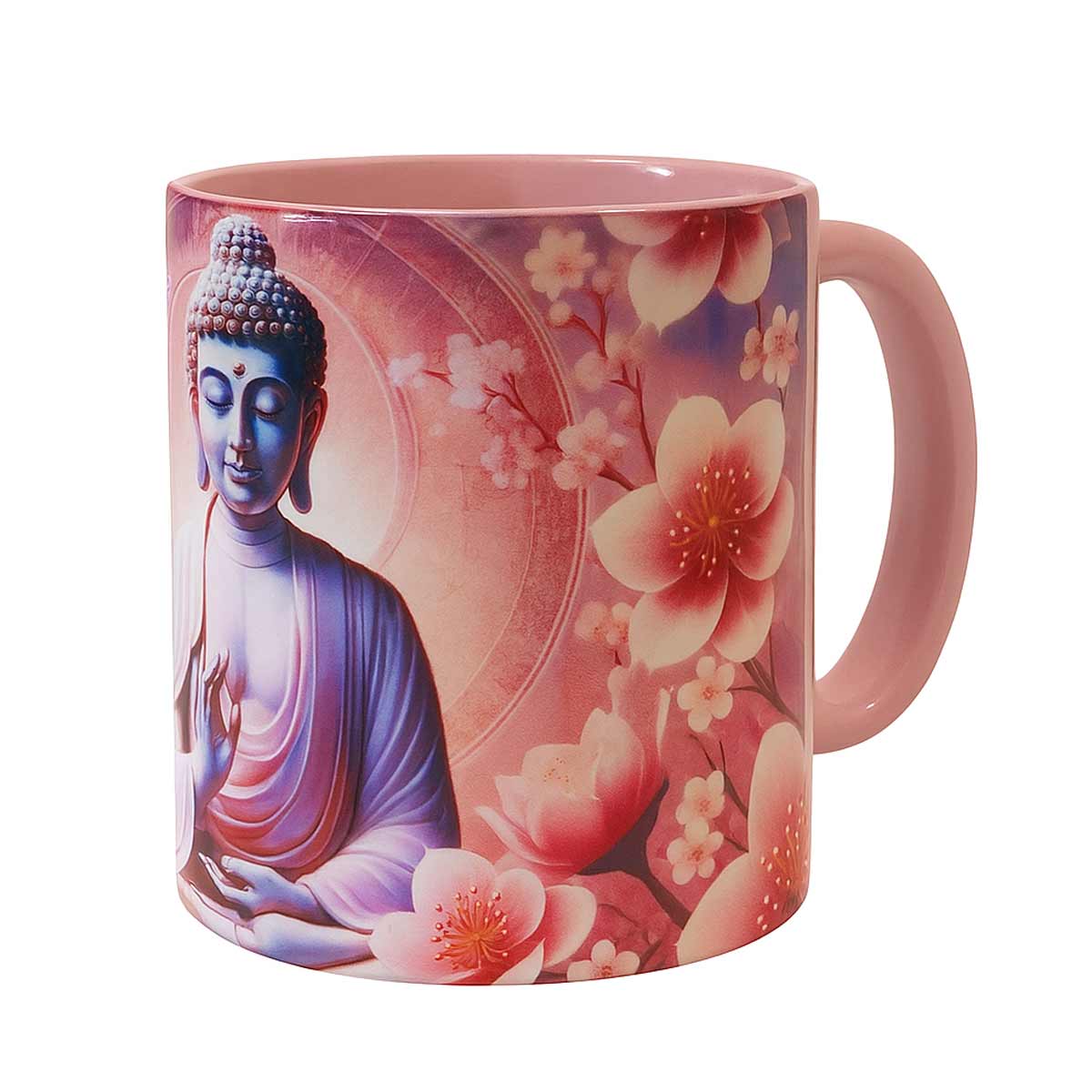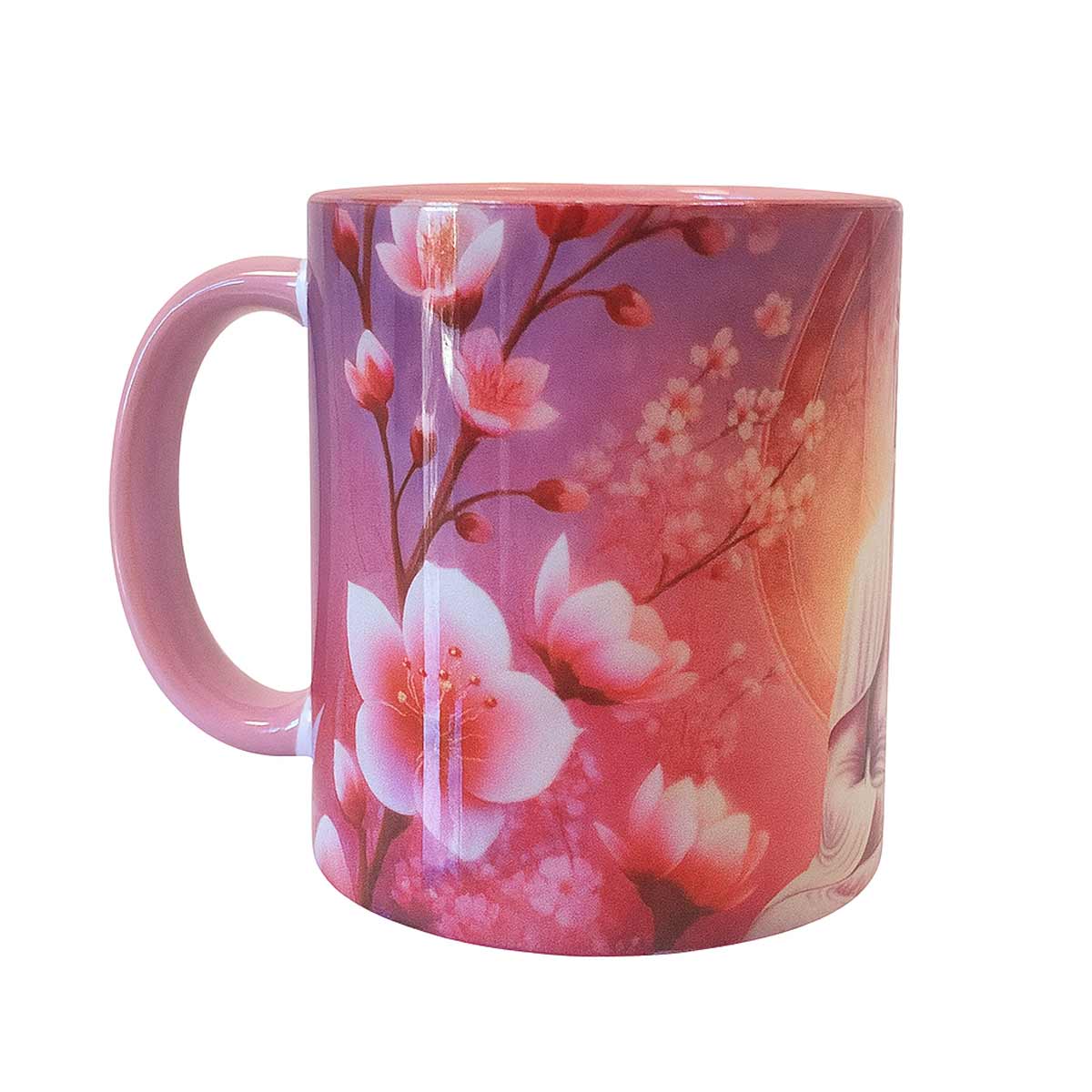 Mug en céramique bouddha fleurs de cerisier – 35 cl Matière : Céramique Dimensions : Hauteur 9,5 cm x diamètre 8 cm Contenance : 0,35 litre Couleur dominante : Rose
