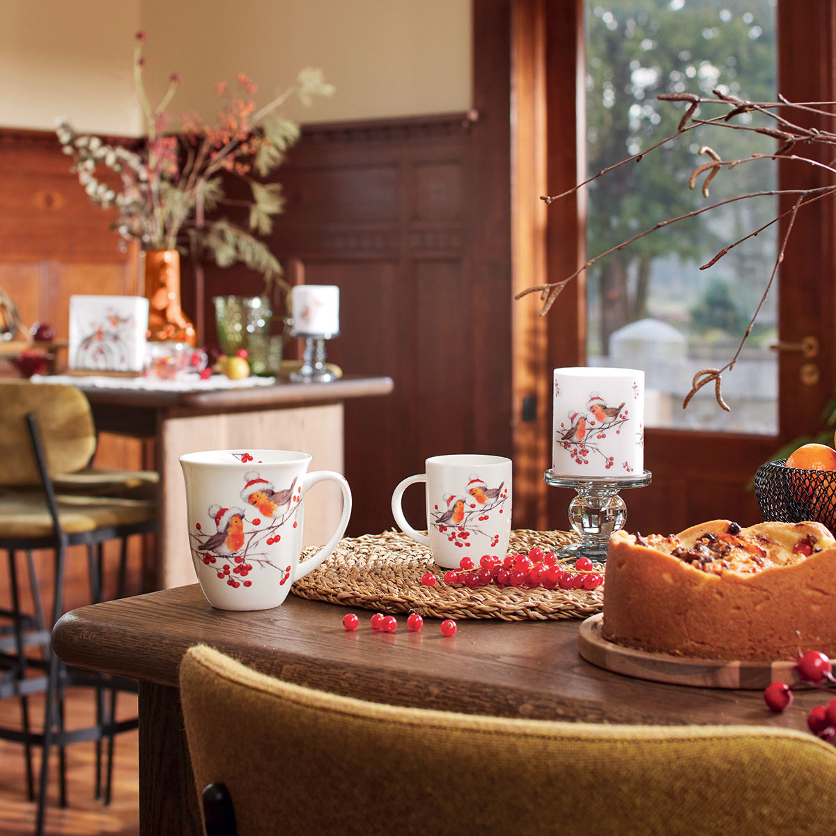 • Porcelaine fine de haute qualité • Illustration hivernale détaillée • Grande contenance 0,40 L • Hauteur 11 cm – Diamètre 10 cm • Décor intérieur avec petit oiseau