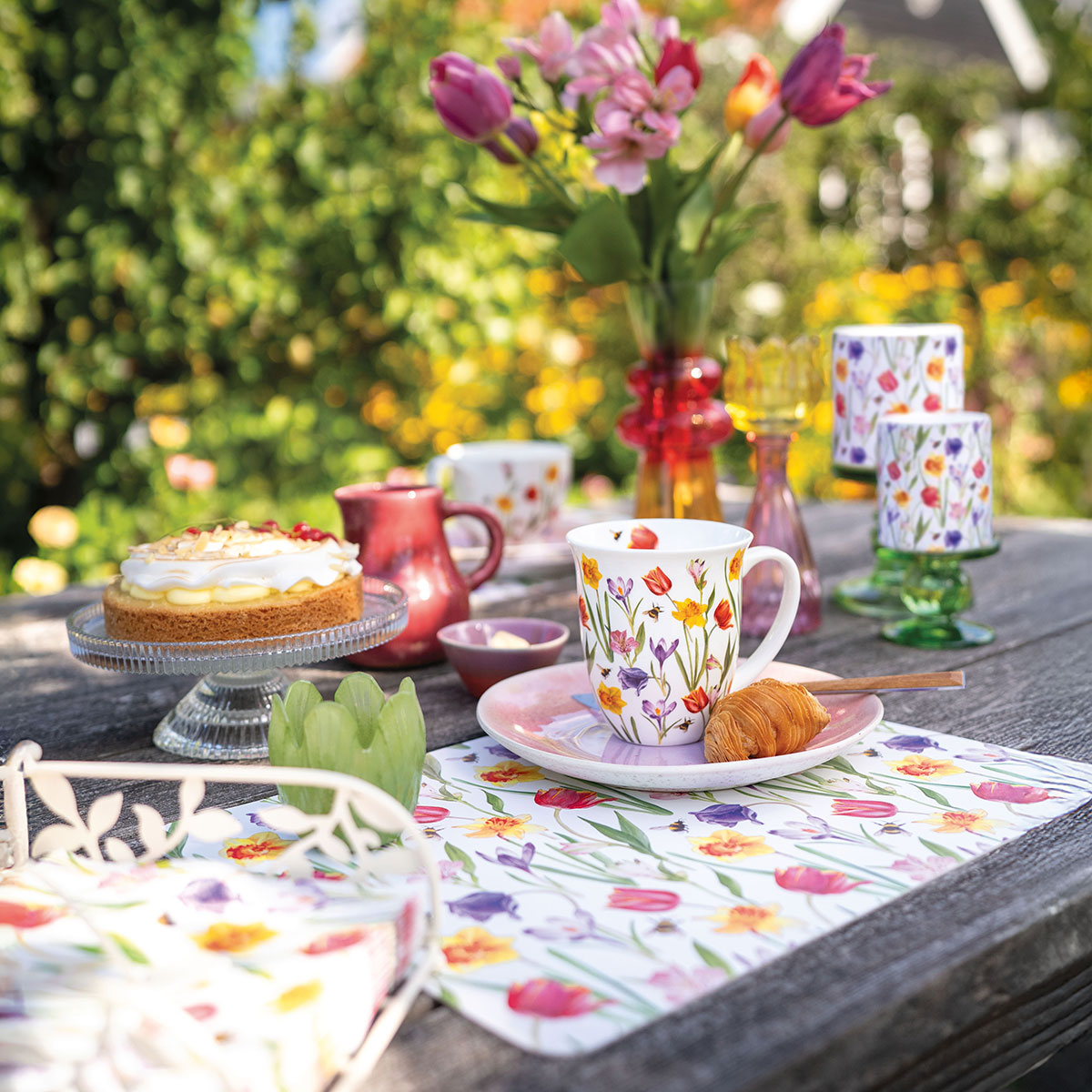 Célébrez le printemps à chaque tasse avec ce mug signé Ambiente. Ses fleurs colorées et ses abeilles joyeuses insufflent une note lumineuse à vos instants café ou thé.