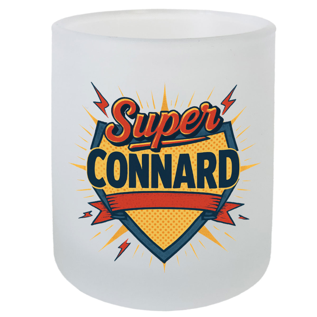 Verre avec sous-verre Super Connard – CBKréation Un set original et plein d’humour pour les super-héros du quotidien ! • Fabricant : CBKréation • Matière verre : verre dépoli • Dimensions verre : hauteur 9 cm – diamètre 7,8 cm • Sous-verre en fibre de bois (Ø 9,5 cm) • Impression française par sublimation • Cadeau original, drôle et décalé pour homme